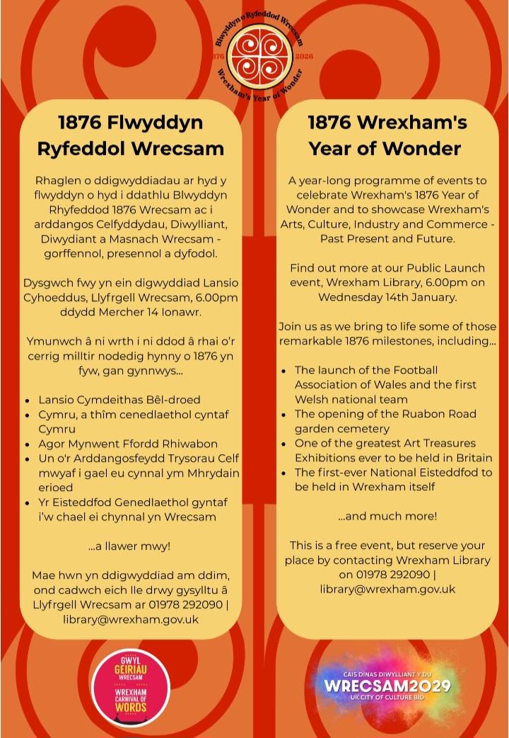 Are you interested in a stroll around Wrexham to learn about some of its fascinating history? A guided tour with one of our walk leaders takes about 2 hours and can be arranged on a date to suit you. Please email us if you are interested at walkaboutwrexham@outlook.com